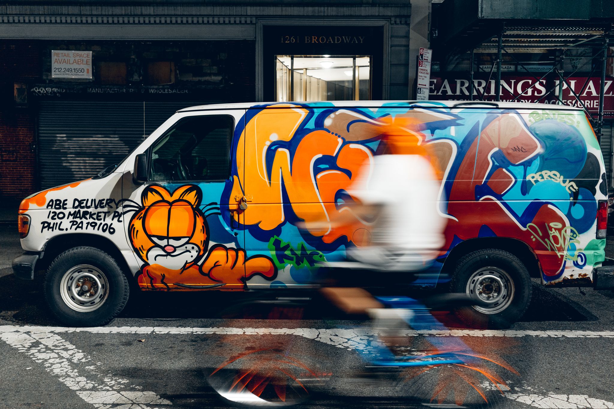 Whether I’m building my collection of graffiti vans, or simply trying to incorporate graffiti into my street photography, I always try to include a human element when possible. I’ll wait patiently for an interesting subject to pass by, sometimes interacting with the environment in an unique way. Other times, all I can hope for is someone riding by on a bike. If all else fails, I’ll take a static photo for my personal collection.