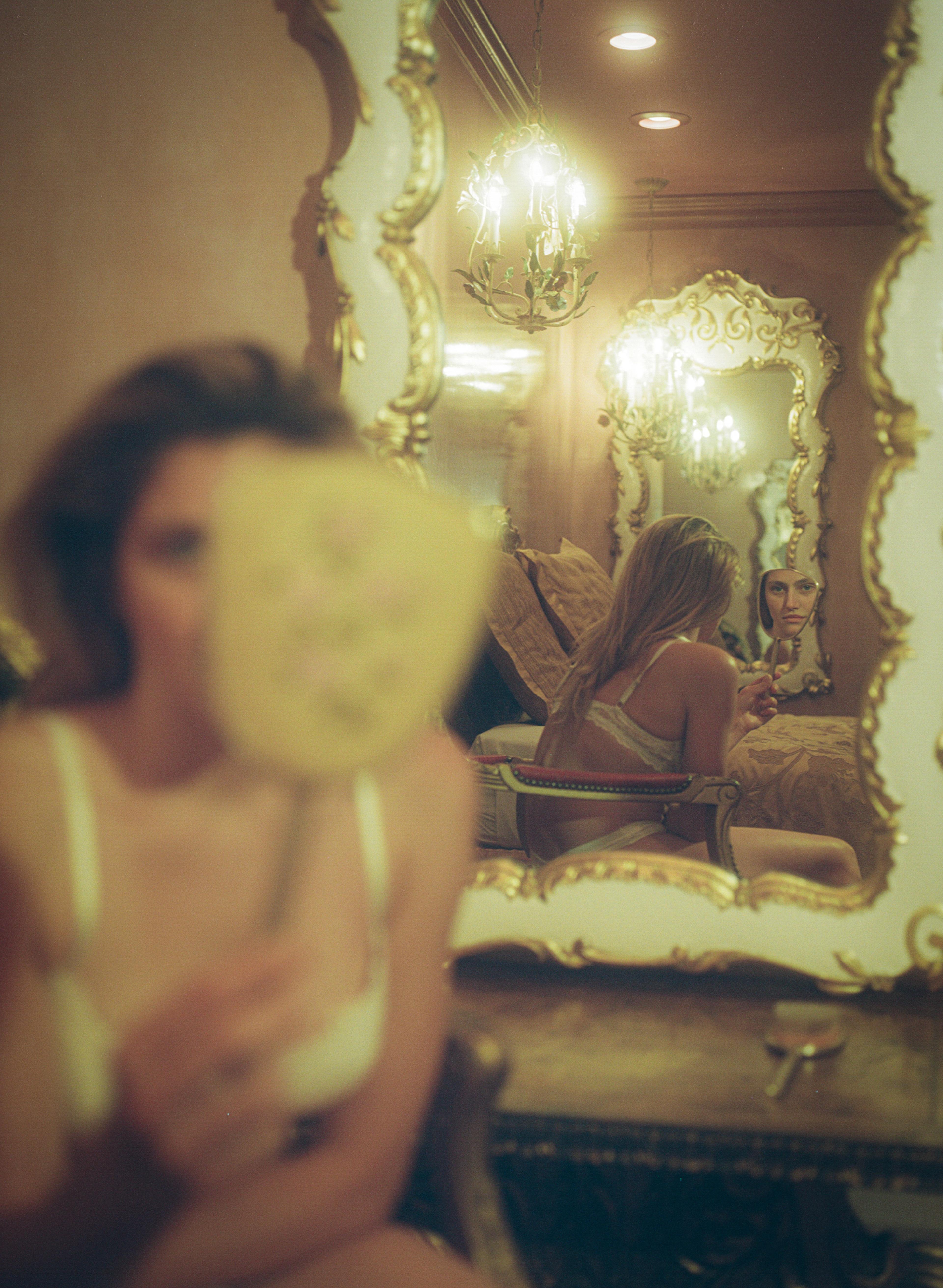 This whole project and drop unfolded so organically. I went to the hotel with my close friend and collaborator, Fern Cozine, with the intention of reigniting my creative juices. When we got there, the place immediately spoke to me. It's such a vortex, it was as if we had fallen down a rabbit hole. So we just started taking photos and the movie began writing itself. It was as if the Madonna Inn was guiding us and telling us what the journey of this character was supposed to be.