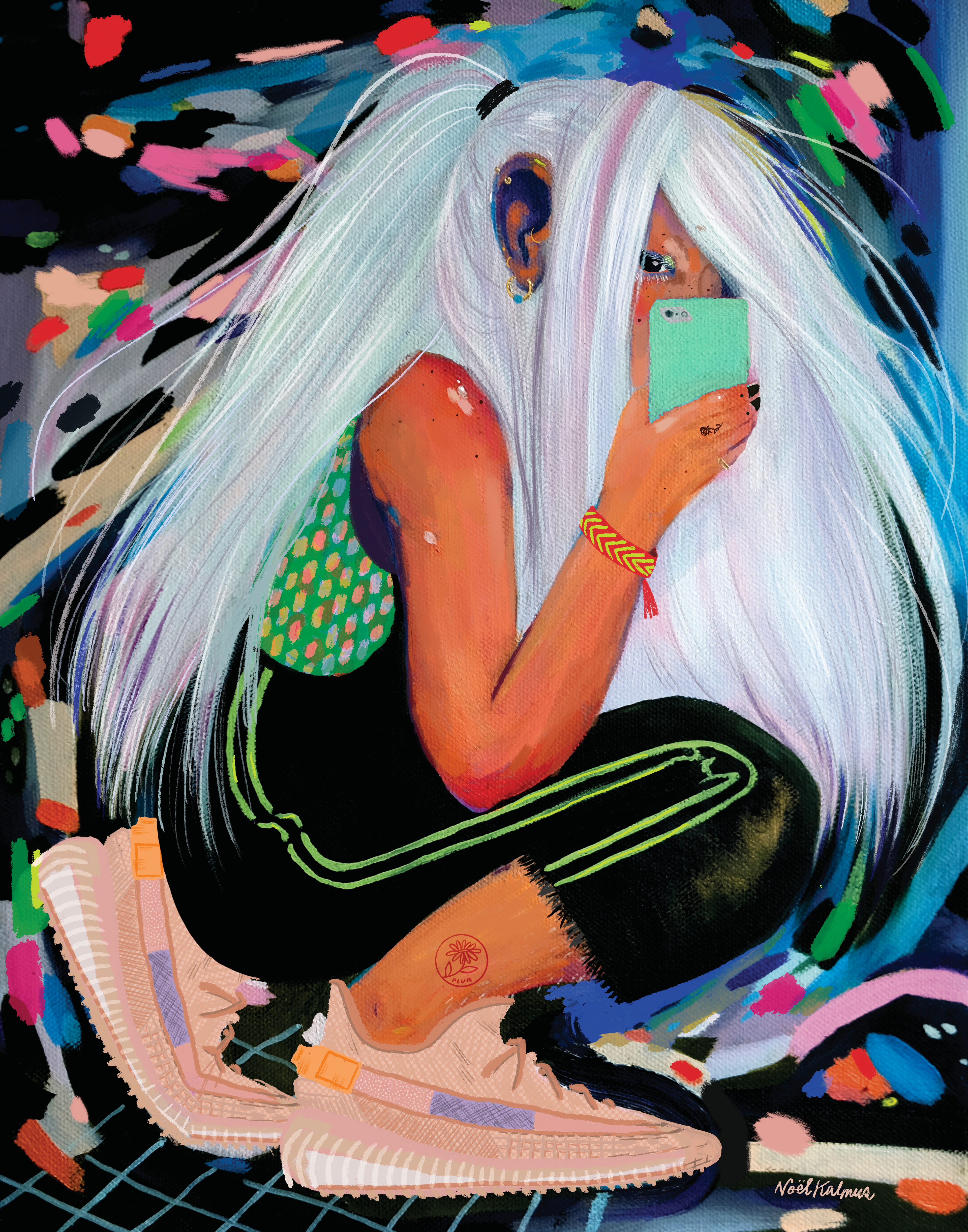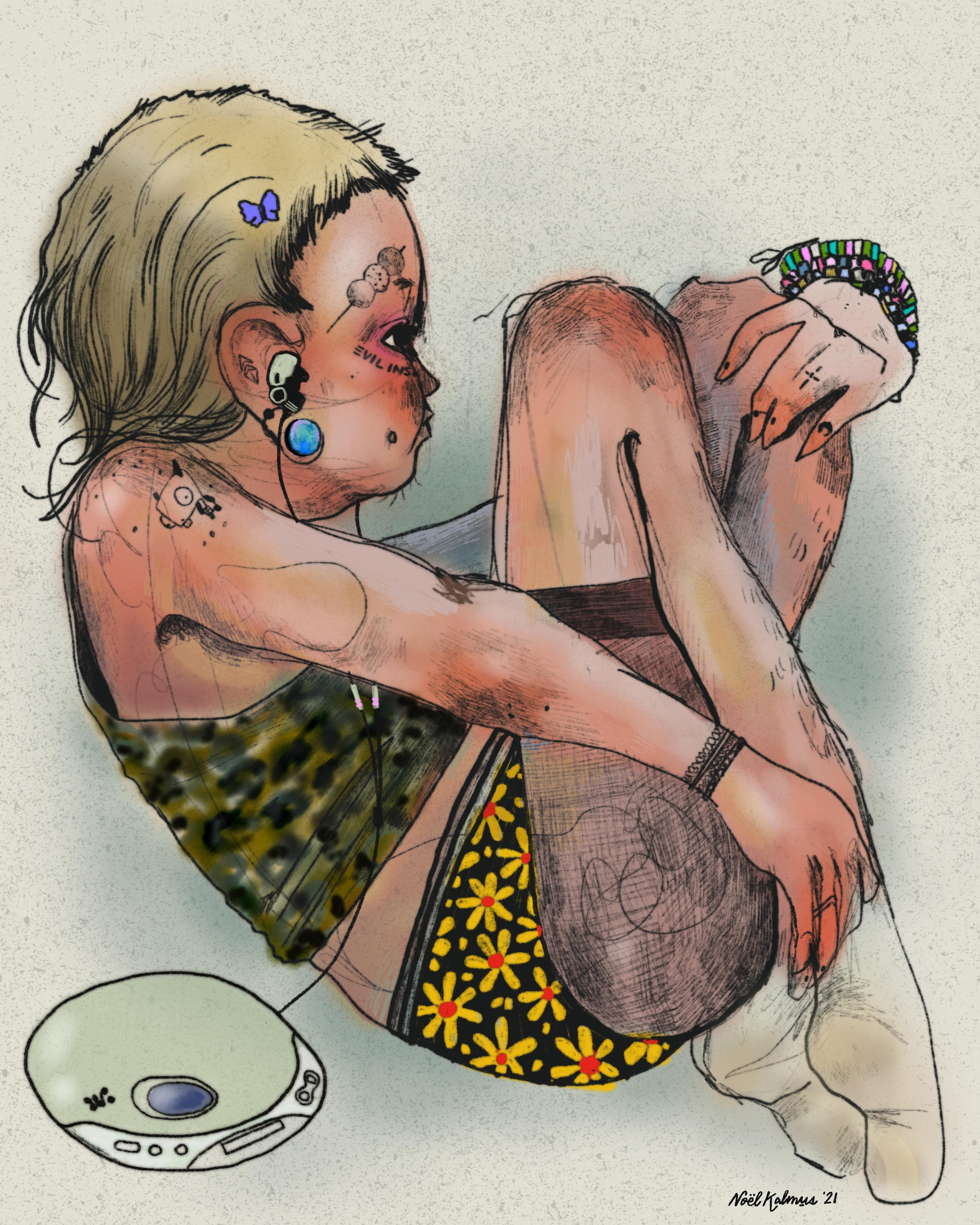 I'm Noël Kalmus, living in Austin, Texas. I have a painting degree and work in oil paint, usually with digital manipulation, graphite, and Procreate. I incorporate colored pencils and gouache as well!