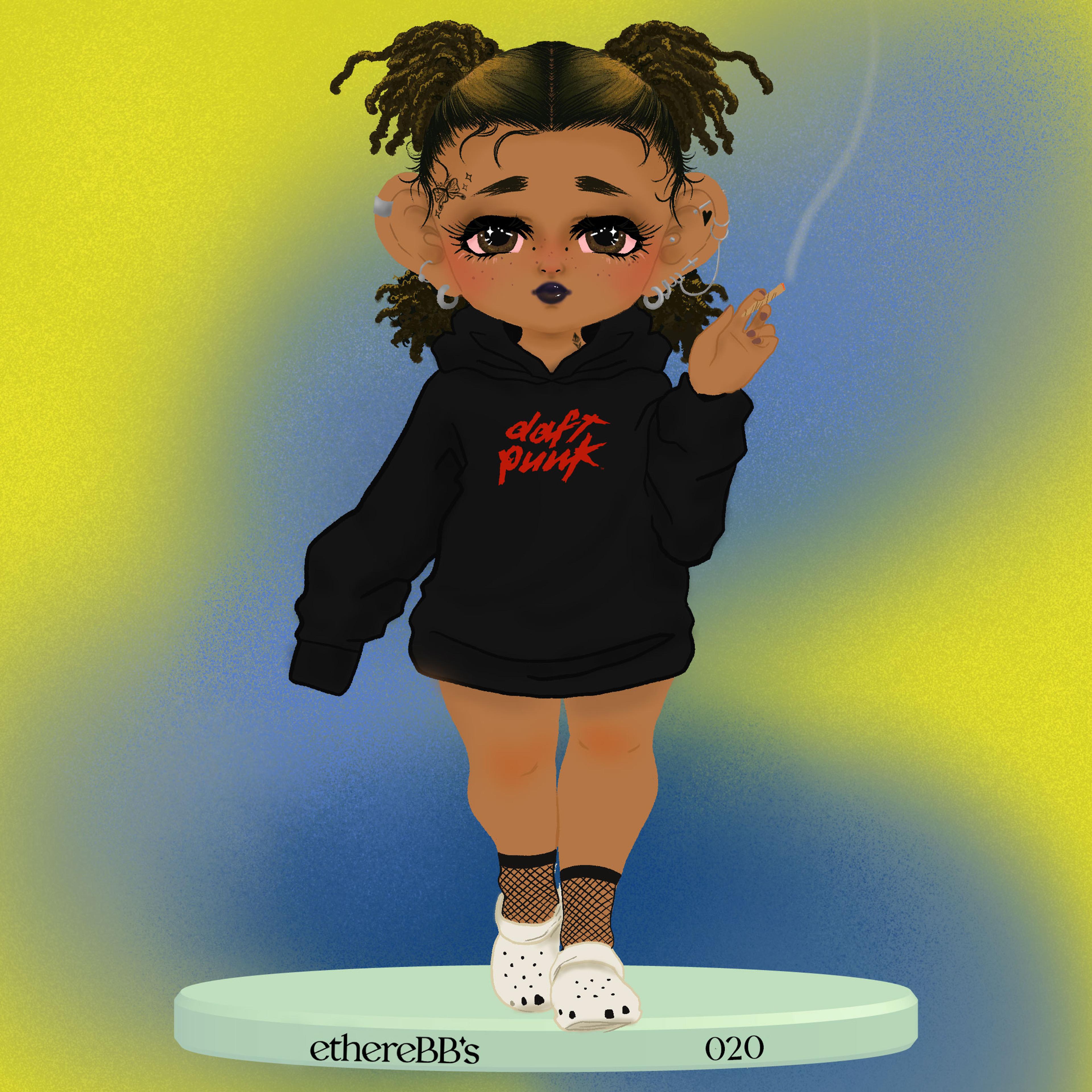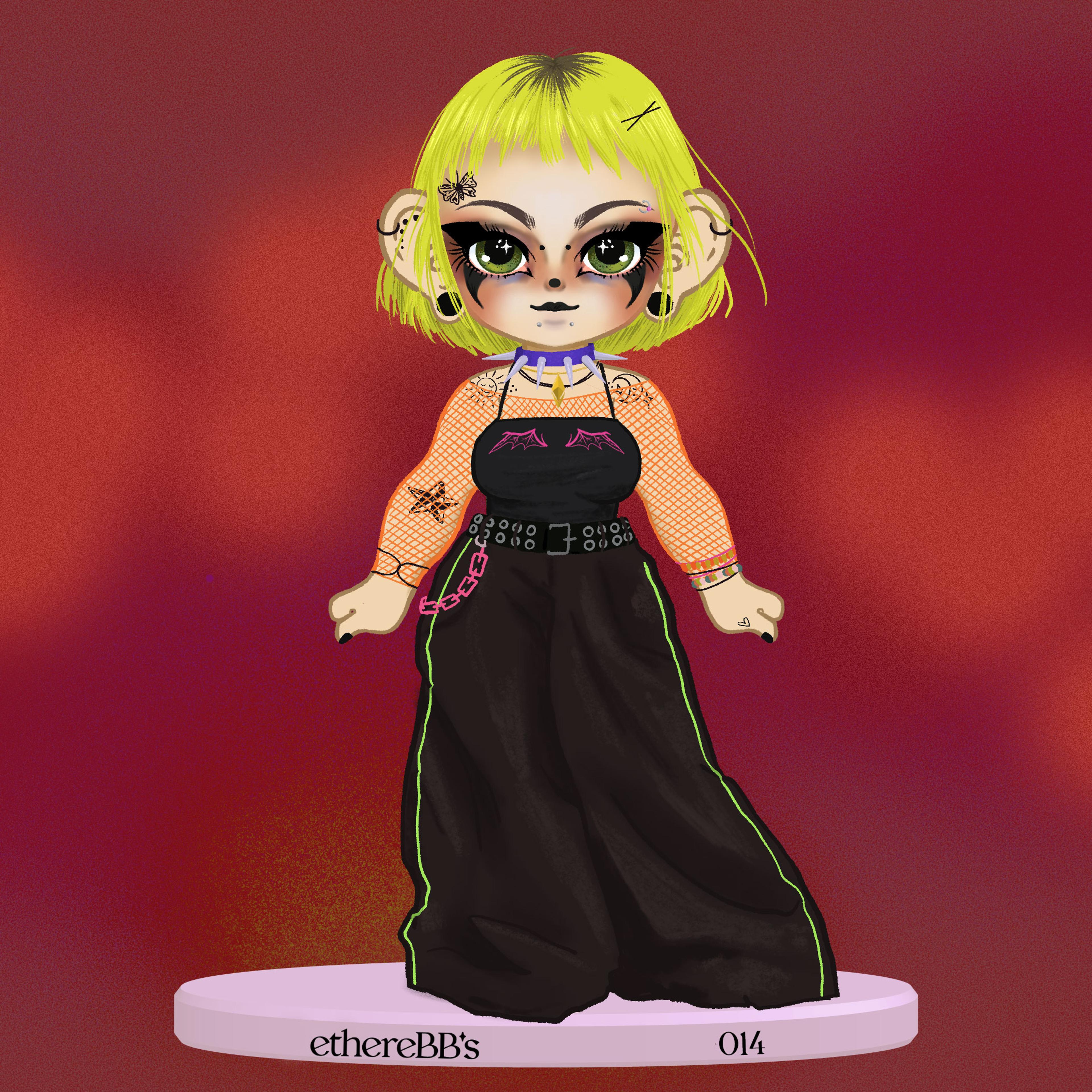 Each ethereBB doll is a celebration of fashion subcultures like I mentioned before, or a character that I love, or a response to something cultural, like the Bull and $GME BB. Each one is a reflection of something about me. Even the Bulma doll - I didn't really love Dragonball that much, but I was trying to get the attention of a boy who did, so she'll always remind me of that certain time in my life. I think they're a lot more personal than most of the collectible series out there, which makes them unique.
