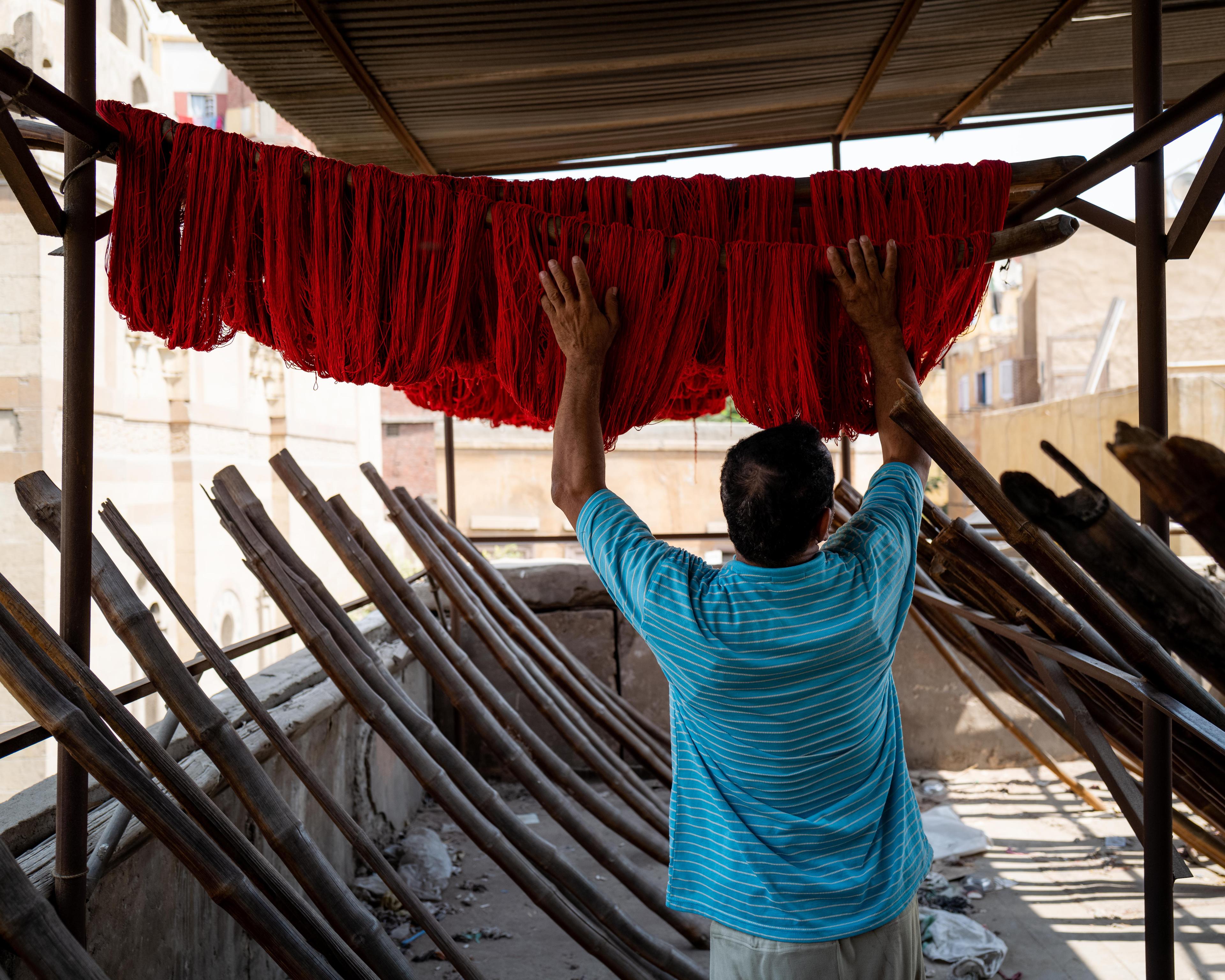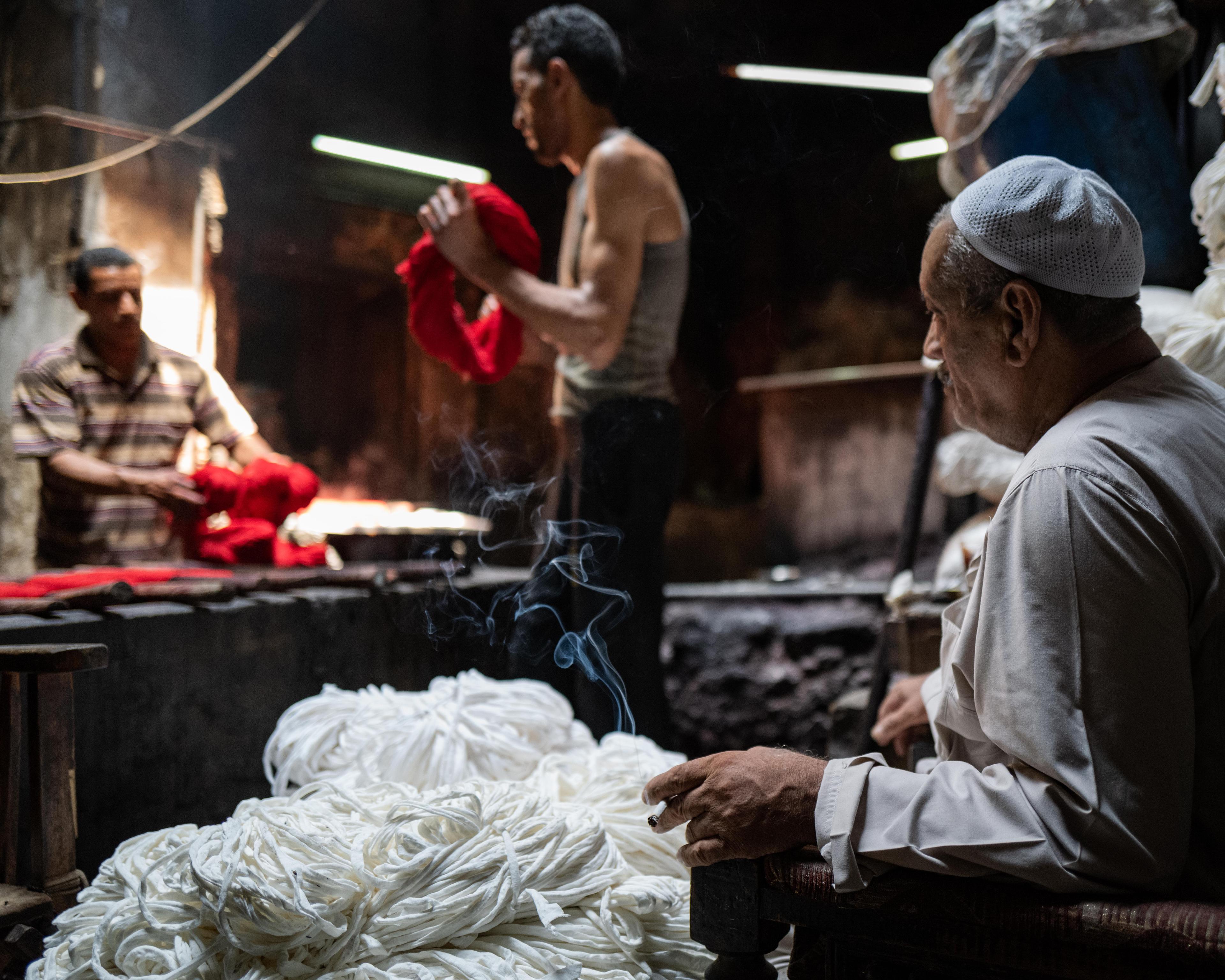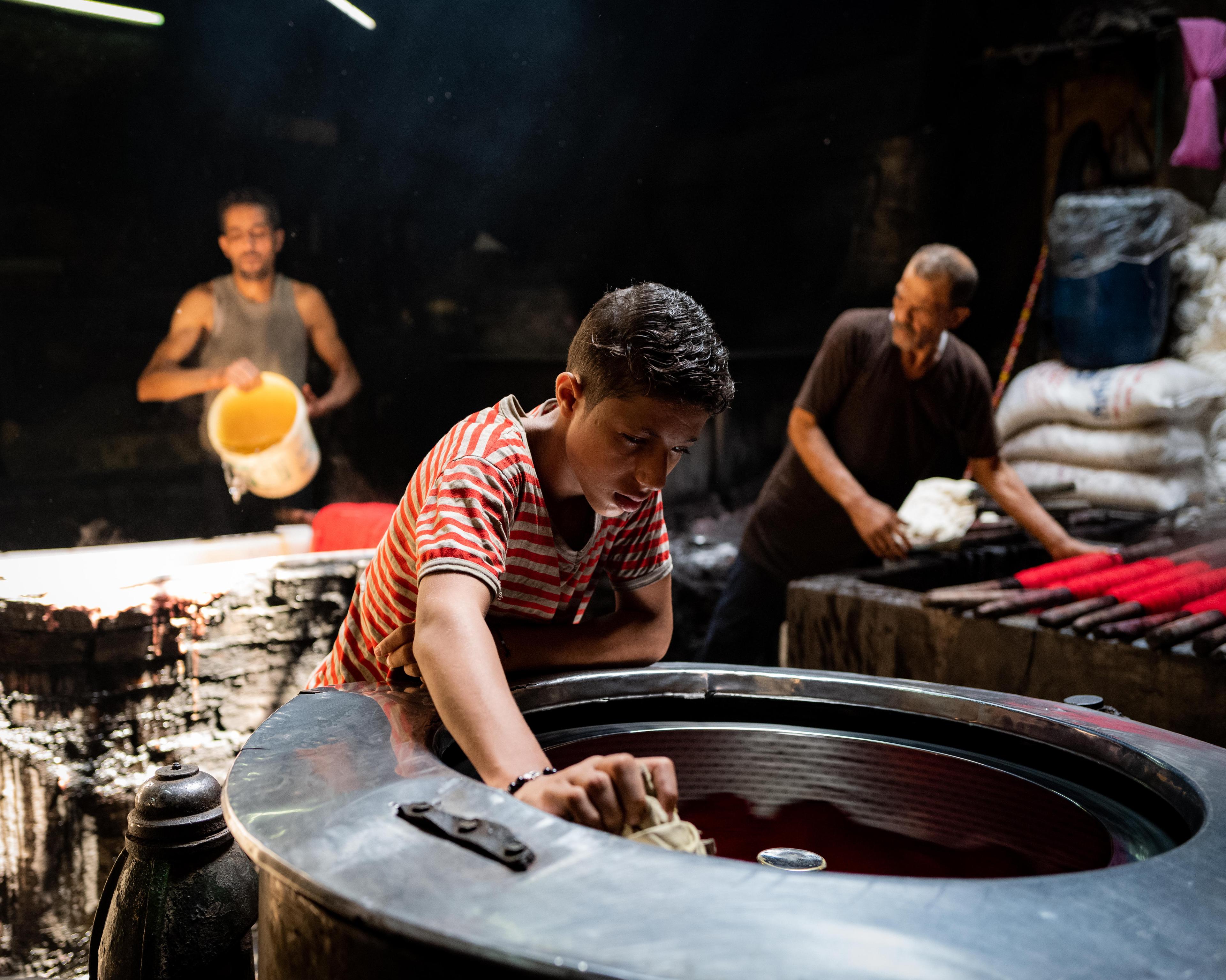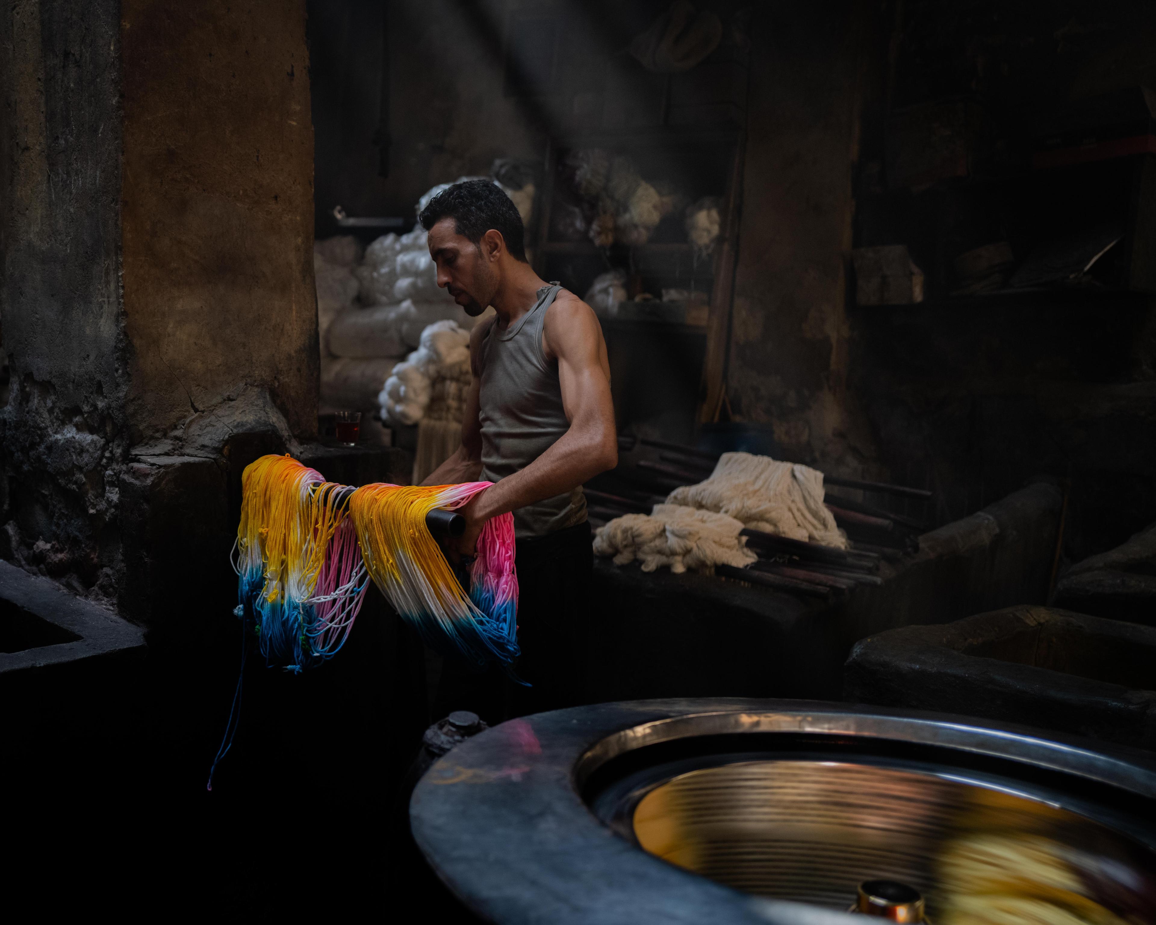 Salama “Hag” Mahmoud’s dye house is the oldest in Cairo, Egypt and he uses dyeing techniques that go back to pharaonic period. Operating since 1901 in the historic El-Darb El-Ahmar neighborhood of Cairo and rented by Salama in 1975, his small business processes textiles such as silk, cotton, and wool to produce shoelaces, carpets, towels, among other speciality garments.