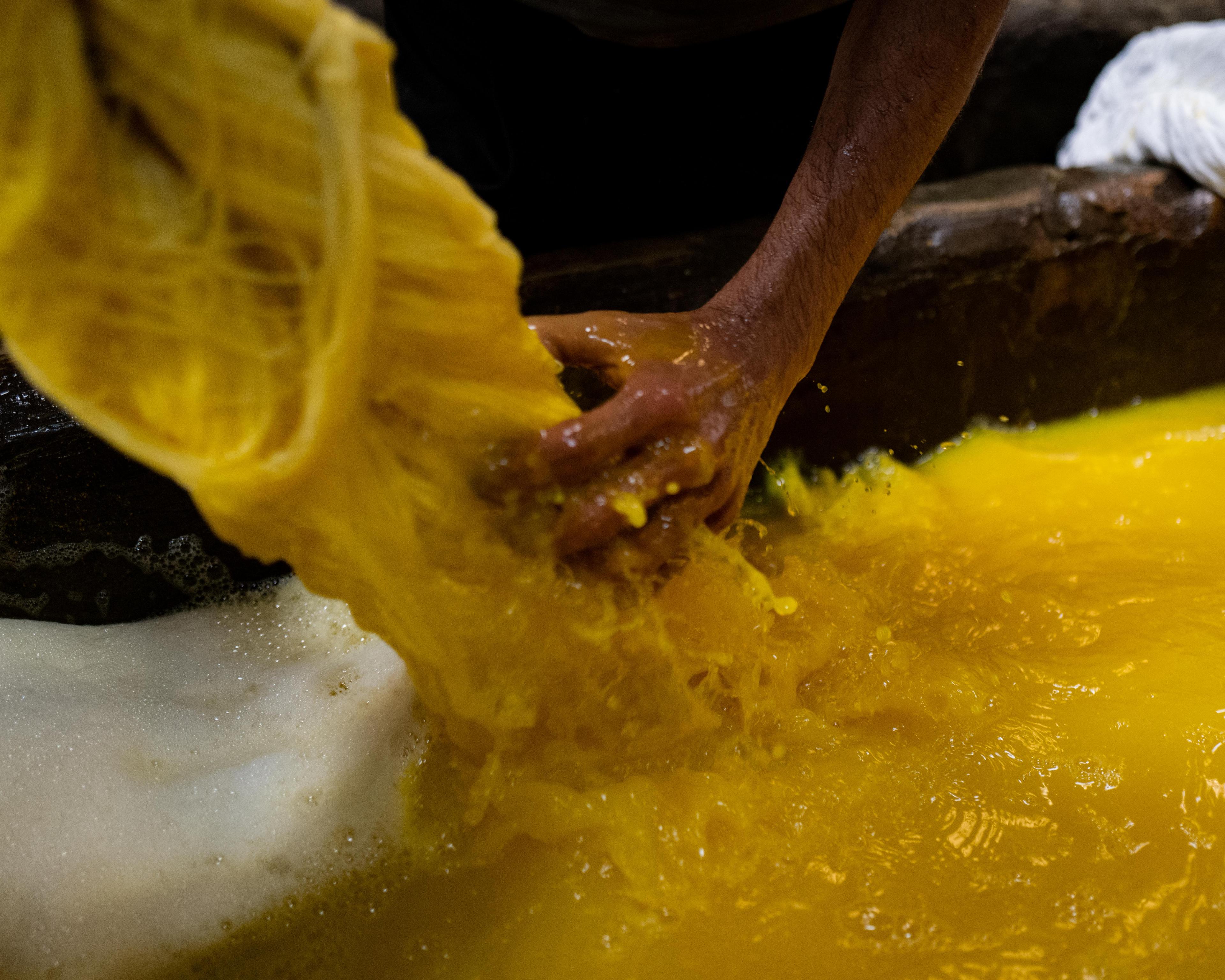 Salama’s dyeing method varies by textile but generally includes the following hands-on process: