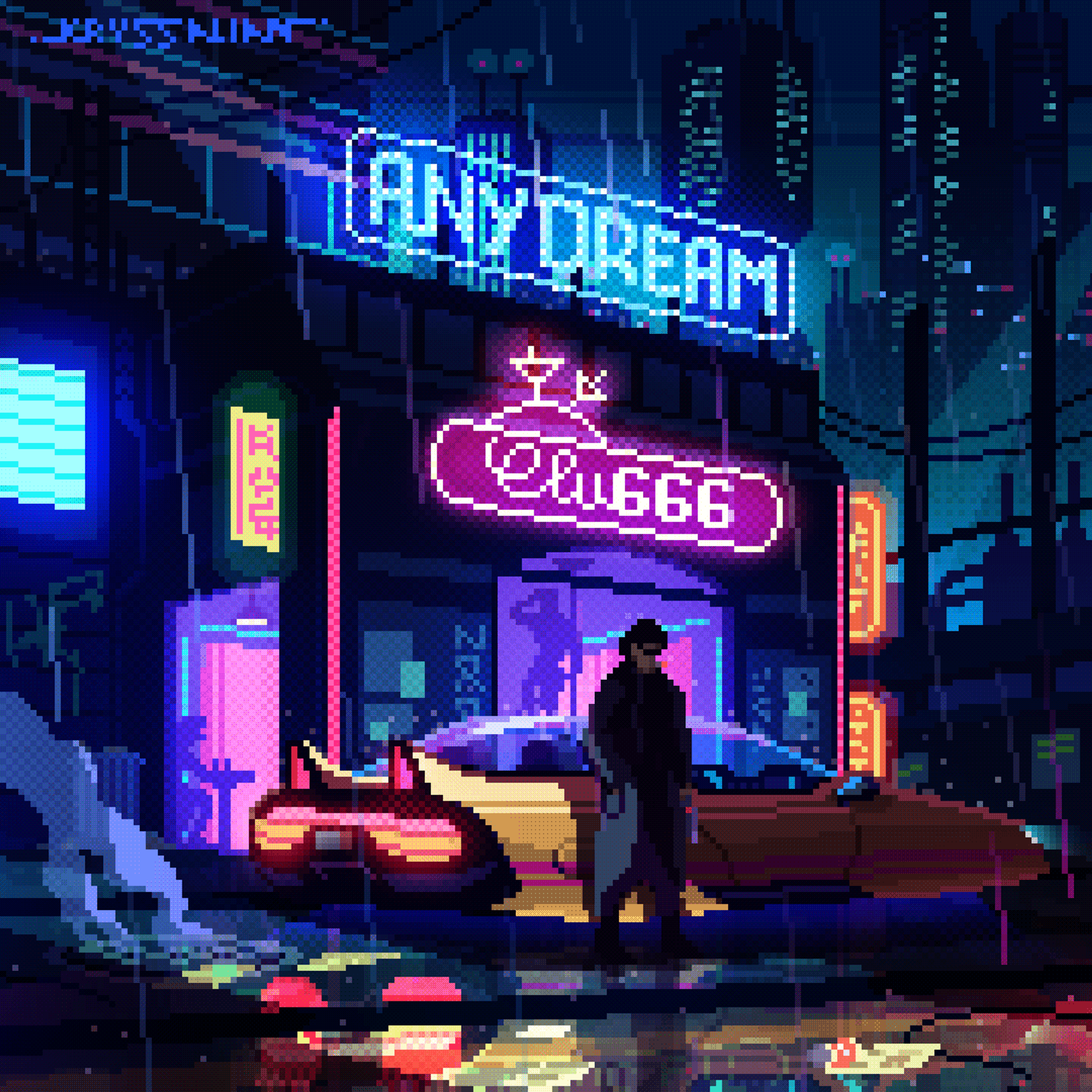 I work almost exclusively with Photoshop, both for pixel art and animation. I also have an iPad with the Art Studio Pro app that I use when I’m not at home. For my personal work, most of the time it seems to start from a temporary mood that I mull over in my mind. I envision a composition which inspires and fascinates me. Once I decide to realize this vision, I start to look for documentations, like photos, concepts, illustrations, movie screenshots. It could be anything for the composition, the colors, or any additional ideas. For clients, the process is almost the same other than I start with the documenting stage to find a good starting point that matches the demand.