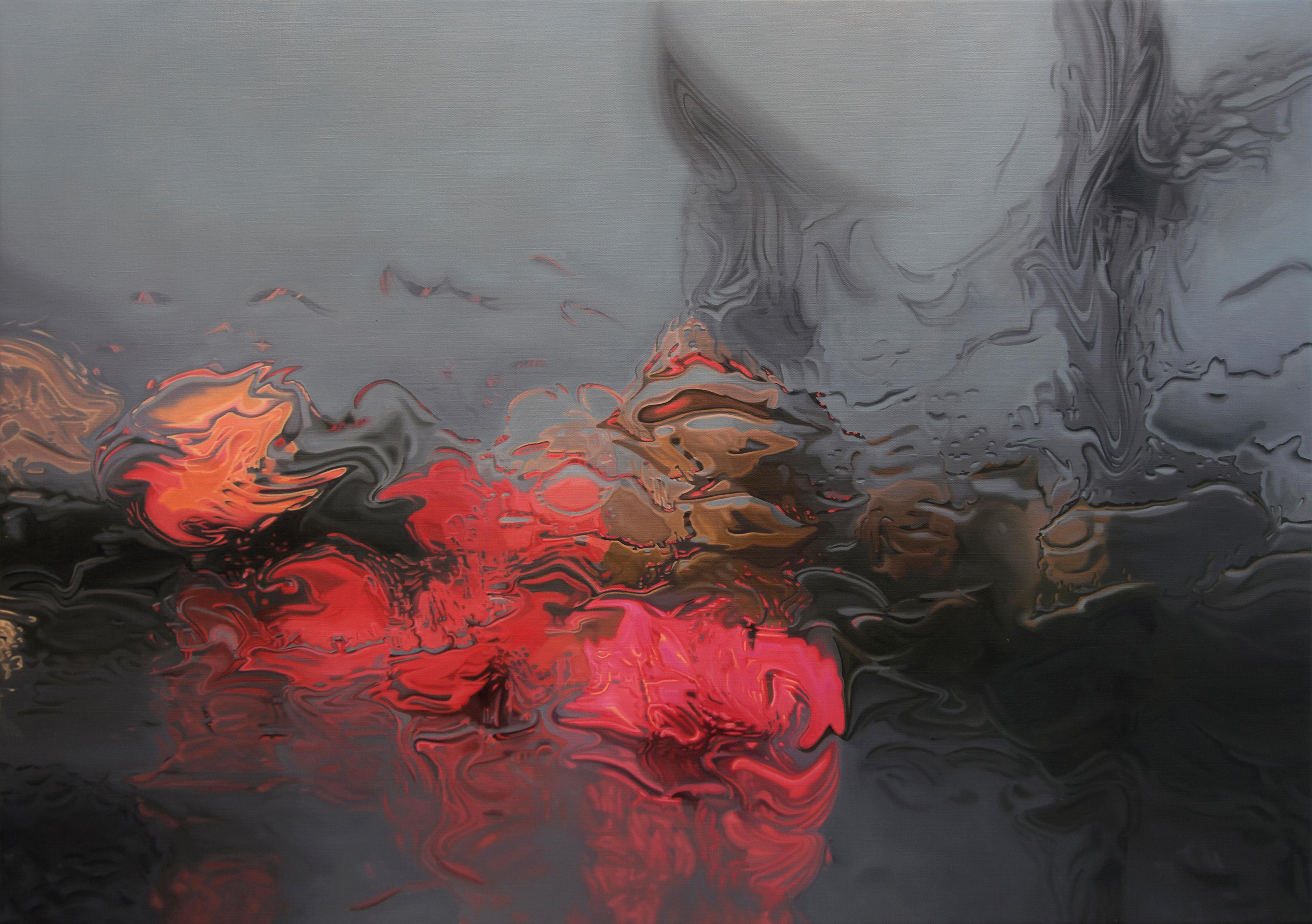 To immortalize something that is usually fleeting, and oft overlooked, is a difficult but worthy pursuit. With “Holding Sway,” for example, our perspective is placed behind a layer of glass, our gaze on the arch of a tunnel, darker still than the surrounding scene, punctuated by the brake lights of hesitant commuters. What could be a moment overlooked by any driver is now at a scale that speaks to the beauty of our in between moments, the places between here and there, where most of life ends up unfolding anyway. “Indefinite Escape” pushed even further into the abstract beauty where water and light collide.