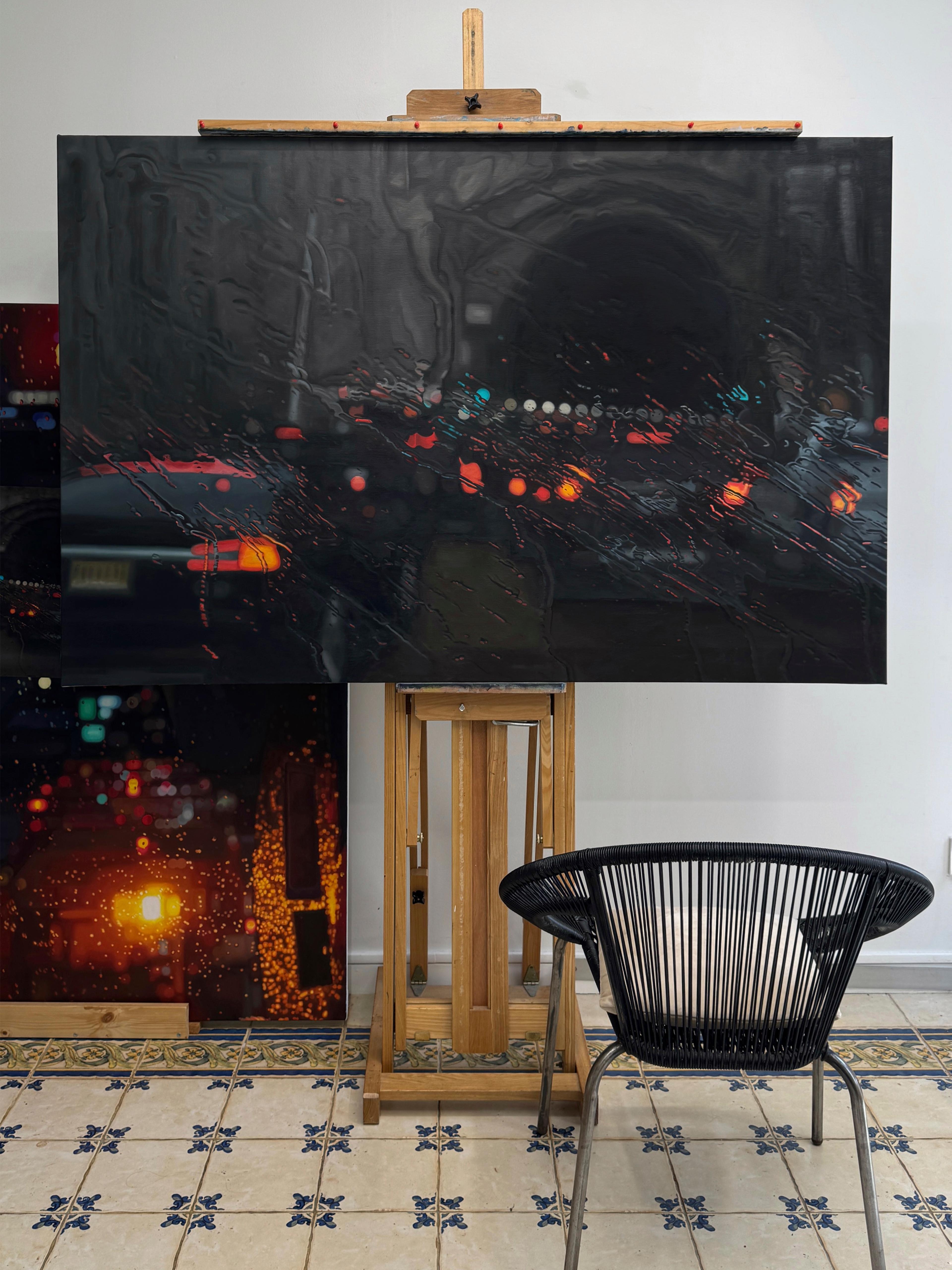 The new show is made up of night paintings- views primarily in New York when it's dark, and the rain is beating down. I started by doing paintings of the bridges and tunnels going in and out of the city, and there is a pretty remarkable view of the entrance to the Lincoln tunnel as cars crowd and merge to get in (called 'Holding Sway'). You feel like something is about to happen any second, and we know traffic moves this way, going from an absolute standstill to shooting through the tunnel.